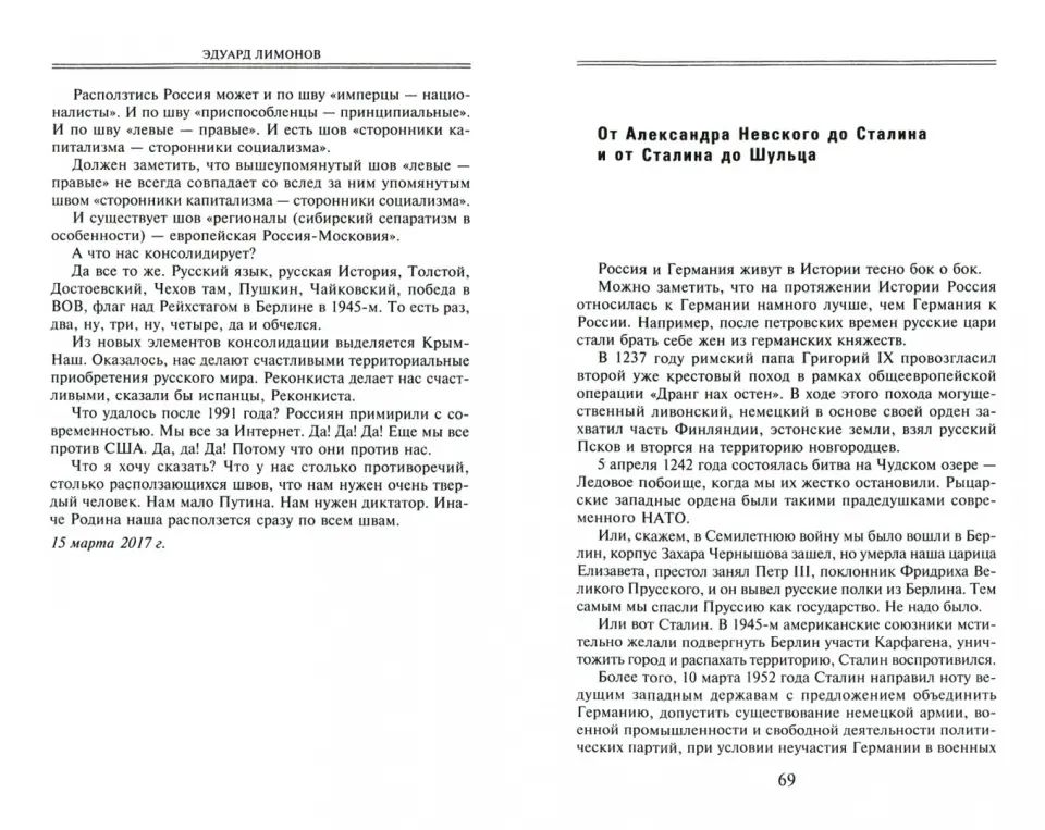 Eduard Limonov considers himself a man of action, not a writer. That's why his articles are always sharp and even cutting. The most important global issues: elections, wars, terrorist attacks - never pass by his attention.